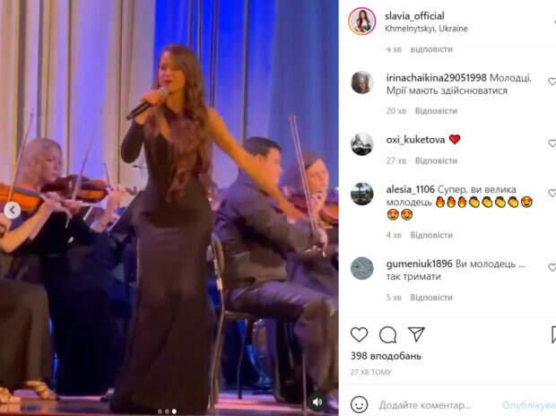 В многочисленных интервью девушка признавалась, что муж был против того, чтобы она строила карьеру. Теперь девушка активно выступает и записывает альбом. В Инстаграм она показала, как спела свой хит с оркестром. «Мечта спеть с оркестром осуществилась. Спасибо, Хмельницкий, за незабываемые эмоции! Спасибо оркестру @oblfilarmonia и крутому дирижеру @taras_demchyshyn_conductor, за то, что написал из Японии, предложил сотрудничество, и даже больше. Впереди сольный концерт. Как Вам «Я тебе не мамка» с оркестром?», - подписала пост звезда. В комментариях Ярославе оставили массу слов поддержки и комплиментов. «Ждем концерт в Киеве», «Круто», «Шикарная», «Молодцы. Мечты должны осуществляться», «Супер, вы большая молодец», «Вы молодец... так держать», - пишут пользователи сети. Напомним, что Slavia в купальнике раскрыла секрет идеального вокала: "Для мощного…". А еще Politeka писала, что Slavia открыла бутылку вина прямо в машине: "не для счастья". Также Politeka сообщала, что Slavia и знаменитый красавчик объявили важную дату: "Хорошая пара".
