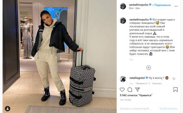 В подписи к нему она предложила поклонникам угадать, куда собирается поехать. «Уже послезавтра мы всей семьей улетаем на долгожданный и длительный отдых. У меня есть надежда, что в этом году я всё-таки научусь нормально собираться, а не закидывать всего-побольше-вдруг-пригодится. Или найду человека, который мне с этим будет помогать», - написала звезда. Ее поклонники тут же принялись угадывать, куда же собралась певица. Среди предложенных вариантов чаще всего фигурировали Бали и Мальдивы. «Зная насколько вы любите медитации и духовные практики, думаю, что вы отправляетесь на Бали», «Точно в горы», «Красотка! Хорошего отдыха!», «Вот это наряд», «К свекрови?», «Санта, какая Вы красивая!», «Красотка чистой воды», «думаю вы едете в Мексику. Чудесного отдыха!», - пишут люди в комментариях. Напомним, Димопулос из "Танців з зірками" показала отца и рассказала о семейной трагедии: "Когда мне было 16 лет...". Как сообщала Politeka, Димопулос сделала острое заявление о лицемерии после обвинения Саниной на "Танцях з зірками" : "Под дурочку...". Также Politeka писала, что победительницу "Танців з зірками" Димопулос унизили на всю страну, кадры позора: «Как мокрая кошка…».