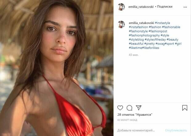 Грудь соблазнительно выпирала из откровенного лифчика. На другом фото Ратаковски позировала в белом купальнике в крупный горошек: "Фигура богини". Модель здесь засветила свой идеальный пресс. Грудь из купальника просто вырывалась наружу. Можно, сказать, что лифчик был очень мал для столь роскошных достоинств. Модель сдавила бюст руками, отчего тот стал казать более искусительным. Образ Эмили завершили различные украшения и распущенные волосы. Примерно за час посты собрали небольшое количество лайков, ведь группа пока не популярная. Ранее мы писали, что Эмили Ратаковски удивила не только невероятной фигурой, но и натуральной красотой. Наряд звезды хоть и был довольно строгий, но позволил рассмотреть ее упругие места. Красотка дерзко смотрела в камеру, приоткрыв пухлые губы, а свои руки она положила на плечи, посветив длинным маникюром. Ранее сообщалось, что Эмили Ратаковски позировала у пляжного домика, привычно выставив ягодицы на показ и повернувшись к объективу спиной. Девушка дополнила пляжный лук белой тонкой майкой и привычно распустила волосы. Как и всегда, на ее лице не было макияжа. Пользователи сети тут же написали массу приятного в сторону роскошной модели. Напомним, лохматая Эмили Ратаковски ошеломила переменами во внешности, стала еще красивее. Также Politeka писала, что Ратаковски разделась и без стеснения показала, чем ее наградила природа. Как Politeka сообщала, что Ратаковски без лифчика повеселилась перед зеркалом в томной позе