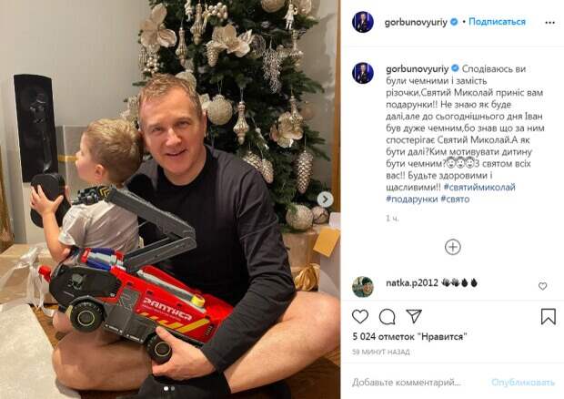 "Надеюсь, вы были послушными и вместо розги Святой Николай принес вам подарки! Не знаю, как будет дальше, но до сегодняшнего дня Иван был очень послушным, потому что знал, что за ним наблюдает Святой Николай. А как быть дальше? Кем мотивировать ребенка быть послушным? С праздником всех вас! Будьте здоровыми и счастливыми", - написал Горбунов. На втором снимке телеведущий позирует уже без ребенка и держит в руках подарочные коробки. В комментариях фолловеры отметили, что сын украинского телеведущего очень быстро повзрослел. "Пупсики", "Какой малыш уже большой. С праздником вашу семью", "Супер папа", "С праздником вас всех", "С праздником Святого Николая", - пишут в комментариях. Напомним, Горбунов из "Танцев со звездами" расцвел в объятиях Осадчей, кадры идиллии: "Юрчик, как довольный кот» Как сообщала Politeka, Горбунов на "Танцах со звездами" дал жару с Мейхер и Кароль, счастливые обе: "было горячо!". Также Politeka писала, что Горбунов из "Танцев со звездами" засветил сияющий бюст Мейхер в вульгарном декольте: "как Наде хорошо...".