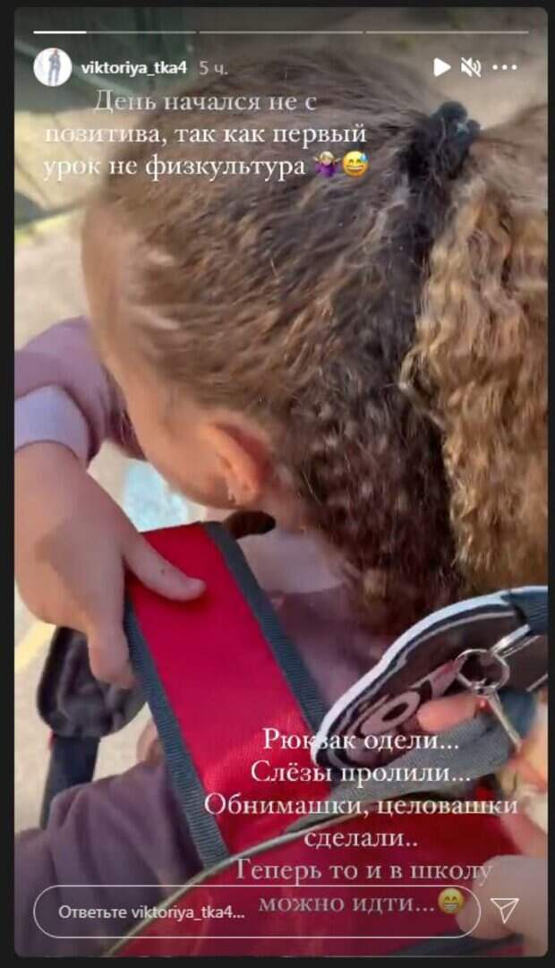 Виктория часто рассказывает в своем Инстаграм о школьных буднях Лизы. Недавно она призналась, что девочке тяжело вставать по утрам, а позже поделилась, что у дочери заболел живот, вероятно, от стресса. В новых сторис Виктория показала, как отправляет малышку в школу. Мама отдала девочке рюкзак, та его послушно надела на плечи, но при этом были заметны слезы в ее глазах. "Красотка! Слезы пролили, хватит", - произнесла жена Ткача. Видео она подписала так: "День начался не с позитива, так как первый урок не физкультура. Рюкзак надели... слезы пролили.. Обнимашки, целовашки сделали. Теперь-то и в школу можно идти". Позже Виктория рассказала, что каждый день поcле школы Лиза приносит ей по орешки. "Сегодня покажу ей это видео и скажу, что благодаря ей белочка не останется голодной", - написала жена Ткача, давая на кадрах орешки грызуну. Напомним, дочь-первоклассница Юрия Ткача заставила родителей поволноваться Как сообщала Politeka, звезда "Квартал 95" Ткач показал, что может заставить его визжать Также Politeka писала, что звезда "Квартал 95" Ткач застал жену в постели не одну