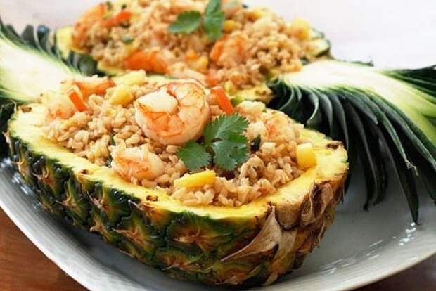 Энергетическая ценность на порцию Белки Жиры Углеводы Калорийность 5,9 г 1,6 г 16,4 г 105 ккал Как вам такая экзотика: тропический фрукт, фаршированный рисом и морепродуктами! Это блюдо пришло из тайской кухни, но его можно приготовить и в России! Оно и выглядит потрясающе, и вкус у него просто волшебный.