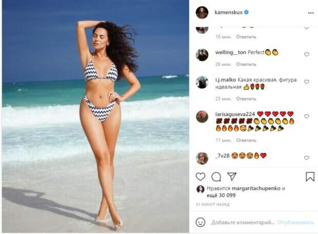 Популярная украинская певици Настя Каменских показала фигуру в маленьком бикини на отдыхе Популярная исполнительница привыкла показывать разные кадры из отдыха и хвастаться тем, как выглядит в разных трендовых бикини. Чтобы привлечь внимание к своей персоне в этот раз, артистка решила не только показать всю себя на пляжном фото, но и напомнить о релизе альбома.