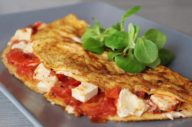 Омлет- прекрасный завтрак, а если добавить к нему свежие овощи и аппетитный сыр фета, то ваш завтрак станет еще вкуснее и полезнее! Уровень сложности Средне Способ приготовления Порежьте помидоры и шпинат. Накрошите 60 г. сыра фета. Приготовьте 4 омлета, выкладывая на половинку омлета по 1/4 части сыра, листьев шпината и нарезанных помидоров.