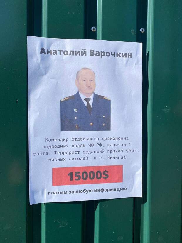 На Украине объявили вознаграждение за убийство командира отдельного дивизиона подводных лодок Черноморского флота России Анатолия Варочкина. Его жизнь оценивают в 15 тысяч долларов, передает корреспондент «ПолитНавигатора».