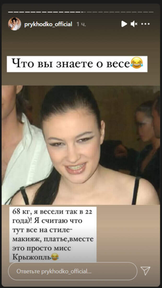 Я считаю, что тут все на стиле – макияж, платье, вместе это просто мисс Крыжопль», - подписала фото звезда. Кроме этого, Приходько показала, как ее одевали в России во время участия в «Фабрике звезд» и «Евровидении». Как известно, Анастасия представляла Россию на песенном конкурсе в 2009 году, но сейчас артистка активно поддерживает Украину. «Я считаю это фото победитель всех моих костюмов. 20 лет. Олимпийский. Москва», - отметила Приходько. «А как вам такой образ? У первого канала тогда не хватило денег мне на туфли, и я вышла в своих кроссовках, где маркером замазали стрелки адидас», - призналась Приходько. Напомним, что Анастасия Приходько показала себя в 16 лет, рассекретив видео кастинга в ВИА Гру: "Ща Косте напишу". А еще Politeka сообщала, что Приходько в топе опозорилась, попытавшись записать танцевальное видео: "Тема закрыта". Также Politeka писала, что Приходько, став копией Джоли, покормила ребенка грудным молоком: "Хотела по-особенному...".
