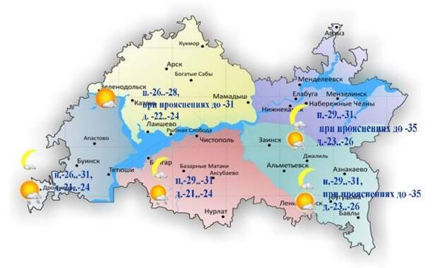 Сегодня, 8 января, в Татарстане ожидается переменная облачность, сообщили в Гидрометцентре по республике. Ветер северо-западный 4—9 м/с. Минимальная температура воздуха ночью -26..-31 C˚, в восточных районах и при прояснениях до -35 C˚. Максимальная температура воздуха днем -21..-26 C˚. Утром и днем прогнозируют небольшой снег.