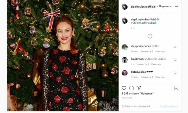 Звезда была в черном платье в крупный красный горох. Наряд подчеркнул все изгибы Куриленко, а также красиво сиял на свету. Модель улыбалась глядя в камеру. Ее макияж был сделан с акцентом на глаза. Примечательно, что Ольга была с непривычным цветом волос - он был медного оттенка и очень шел звездной красотке. За час пост собрал более 8000 лайков и много комментариев. Пользователи сети засыпали звезду комплиментами. "Ольга, Вы всегда выглядите идеально