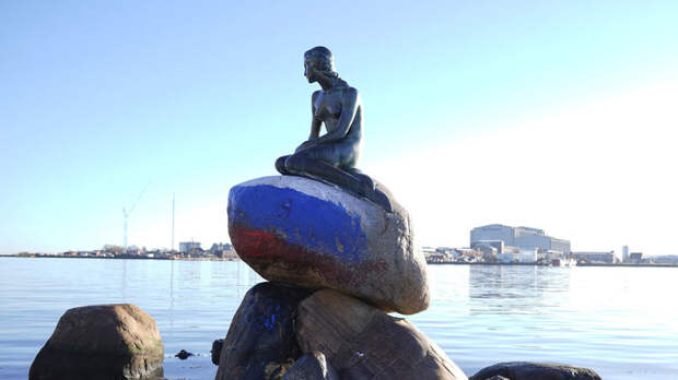 В Копенгагене неизвестные раскрасили в цвета российского флаг основание знаменитой статуи Русалочки, сообщает агентство Reuters. Белая, синяя и красная полосы, нанесенные на переднюю часть камня, на котором сидит Русалочка, были обнаружены в четверг, 2 марта.