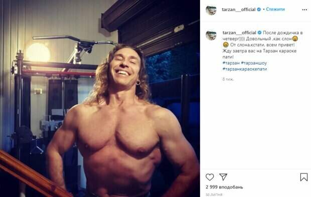 Известный на все пространство СНГ 50-летний стриптизер Тарзан показал поклонникам, чем занимается после скандала с изменами жене Наташе Королевой Об этом сообщает Politeka со ссылкой на Instagram знаменитости. «Возвращение к невинности», - коротко говорится в сообщении. Обратим внимание, что на опубликованных кадрах Тарзан показывает реку и природу.