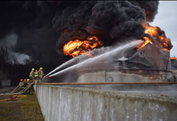 Российские беспилотники разбомбили нефтебазу в районе города Дубно