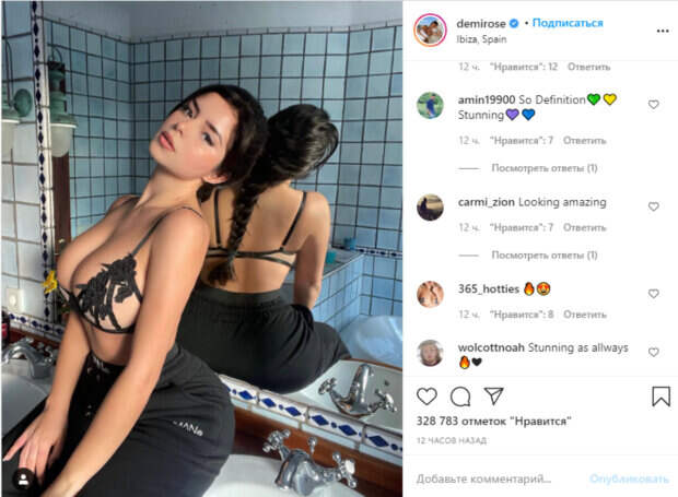 Однако все попытки не увенчались успехом – девушка оказалась в больнице с расстройством пищевого поведения. После того, как Роуз восстановила свой иммунитет, она решила не прятать себя под мешковатой тканью и начала активно публиковать фото с дерзкими образами в Инстаграм. Прославившись, Деми занялась рекламой белья, которая сейчас является для нее средством заработка. Даже в отпуске или на отдыхе девушка блистает в трендовых бикини. Как видно на новом снимке Деми, она выглядит весьма привлекательно. В черных брюках и в такого же оттенка лифе с сеточкой, Роуз подчеркнула достоинства перед зеркалом. А заплетенные длинные волосы в косу открыли обзор на всю фигуру знаменитости. «Захвачен новый приятный образ