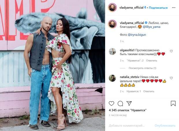 При этом под ним ничего не было, что позволило танцору засветить свой пресс. Лилия Яма позировала в соблазнительном костюме с коротким топом и длинной юбкой с цветочным принтом. На фото Яма приобнимает жену за талию, а та чувственно прижимается к мужу, обнимая его за шею. «Люблю, ценю, благодарю!», - подписал фото хореограф. Его поклонники тут же принялись комментировать снимок. «Противозаконно быть такими классными», «Нет слов, вы идеальная пара», «Вы красивая пара», «Бесконечного счастья вашей семье», «Как круто!! Это от Бога!!!», «Такие вы конфетки», «Вы две половинки», «Любви вам!», - пишут люди. Ранее мы писали, что Яма поделился новым фото в своем Инстаграм. «Когда-нибудь обязательно полетим на Кубу!.. А пока - просто потанцуем», - подписал фото Яма. Пользователям Сети он показал страстный танец с женой. Яма запечатлен в джинсах и расстегнутой безрукавке, а его жена танцует в платье с цветочным узором и в бежевых босоножках на шпильках. Напомним, Влад Яма с обнаженным торсом ошеломил страстью с красоткой-женой: «Ну, вообще огонь». Как сообщала Politeka, мускулистый Влад Яма из «Танців з зірками» изумил знойным видом после тренировки: "Красавчик и трудяга". Также Politeka писала, что скандал Ямы из "Танців з зірками" и Леси Никитюк, танцор поразил признанием: "Я этого точно не планировал. ..".