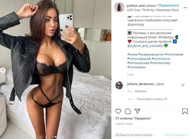 Известная модель Алена Омович, которую называют украинской Кардашьян, посветила лишним на селфи в спальне В этот раз модель решила устроить домашнюю фотосессию в кружевном полупрозрачном белье и куртке из питона прямо в спальне. Девушка не только не стесняется показать лишнее, но и всячески делает акцент на своей исхудавшей и необычной фигуре.