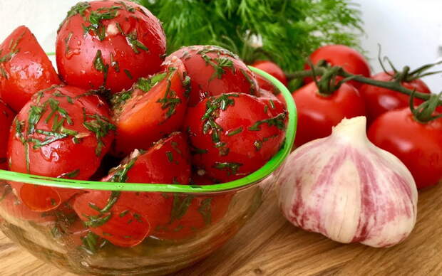 Ингредиенты: 500 г помидор черри или сливки 3 зубчика чеснока укроп 1 ч. л. соль 1 ч. л. сахар 0,5 ч. л. черный молотый перец 3-4 ст. л. масло подсолнечное 1 ч. л. приправы орегано 1 ст. л. уксус 9% [caption id="attachment_65623" align="aligncenter" width="1200"] Помидоры богаты витамином С[/caption]Приготовление (ВИДЕО):Помидоры разрезать на 2 или 4 части.