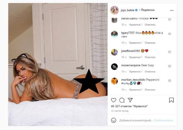 Известная американская звезная модель ДжоДжо Бейби, которую называют копией Ким Кардашьян, показала себя в провокационном образе На фото ДжоДжо позировала в леопардовых трусиках, а образ дополнила аналогичными ушками. Бейби лежала на кровати, развернувшись спиной к камере, приковывая взгляды к аппетитным "булочкам".