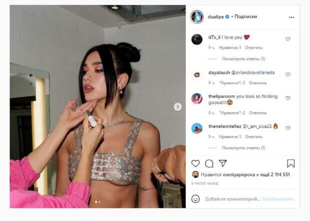 Известная певица Дуа Липа показала себя и рассказала о случайности На фото Дуа позировала в одном блестящем топе с дырочками. Наряд практически не прикрывал пышный бюст Липы, который так и выпирал из него. Красотка собрала волосы в узел, а образ дополнила ярким мейкапом. Кадр получился довольно интересным и увлекательным, ведь звезда совсем не смущалась.