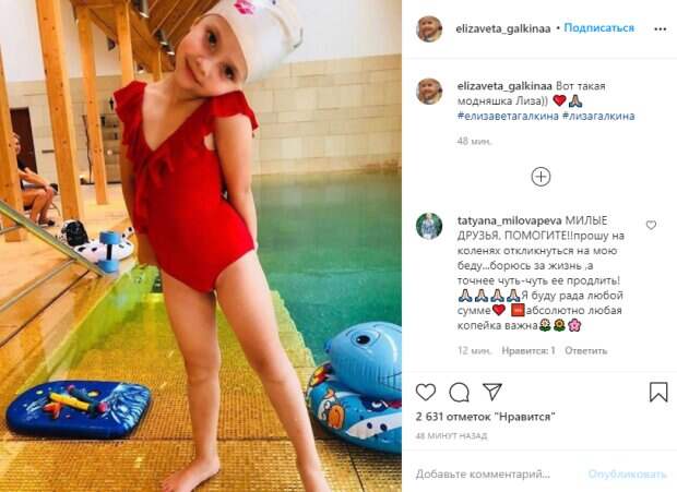 Семилетняя Лиза не отстает в популярности от своих звездных родителей - певицы Аллы Пугачевой и юмориста Максима Галкина Как передает Politeka.net, на фан-страничке девочки в Инстаграм опубликовали архивное фото, на котором малышка предстала в красном сдельном купальнике с милыми оборочками и резиновой шапочке для купания.