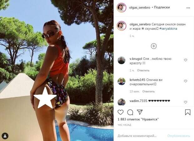 Известная певица Ольга Серябкина, бывшая солистка группы "Серебро", посветила упругими ягодицами Звезда с шикарной фигурой может себе позволить жаркие кадры в купальниках, пишет Politeka.net. Поклонники красотки восхищаются совершенными формами знаменитости и публикуют ее фото в соответствующих группах.