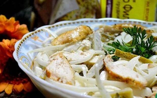 Готовить проще, чем Цезарь или Обжорку, а получается ни чуть не хуже. Само приготовление салата проще простого. Но оторваться от салата просто невозможно. Этот салат исчезает со стола в первую очередь. Слава Богу, что готовится он моментально. А потому можно быстренько приготовить еще одну порцию этого обалденного мясного салата с интересным названием Чезаре.