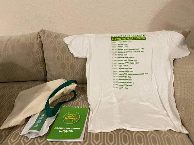 По-видимому, чтобы не забыть самим, и чтобы помнили массмедиа, на текущем съезде партии в Трускавце нардепы вручили журналистам футболки, которые украшены списком самых громких законов, принятых Радой XI созыва. Среди них, например, закон о налоге на Google, коренных народах, и, естественно, о судебной реформе. При этом законы отмечены датами, когда их принимали в первый раз. А компанию футболке составляет блокнот с надписью "позитивные перемены каждый день". Интересно, что о "позитивных переменах" думают жители курортного Трускавца, с которыми пообщались Vesti.ua. Ведь "слуги" уже дважды выбирают город местом партийного съезда.