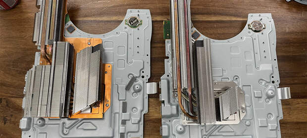 Согласно более подробному анализу обновленной модели PS5, которая получила более компактный радиатор, новая система охлаждения может быть эффективнее прежней.Ютуб-канал Hardware Busters International провел сравнение оригинальной и новой PS5, в частности сравнив температуру отдельных компонентов во время запуска особенно нагружающих сцен из .
