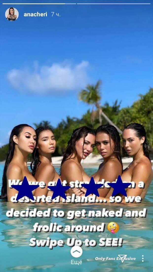 Ана стояла посередине прикоснувшись головой к жгучей брюнетке. Модель улыбалась, глядя в камеру, при этом ее губы были слегка приоткрыты в улыбке. Волосы у всех моделей были мокрыми после купания, а все они позировали на пляже, стоя в голубой воде. Снимок получился очень горячим, благодаря таким жарким и "распутным" красоткам. "Мы застряли на безлюдном острове, поэтому решили раздеться и порезвиться", - написала Ана. К сожалению, так как кадр был обнародован в сториз, никто не смог открыто высказать свое мнение открыто. Напомним, модель Ана Чери позировала под душем, до неприличия задрав и без того крохотное бикини. При этом наряд выглядит так, будто едва выдерживает натиск внушительных форм красотки. «Это мое Хэллоуин-бикини