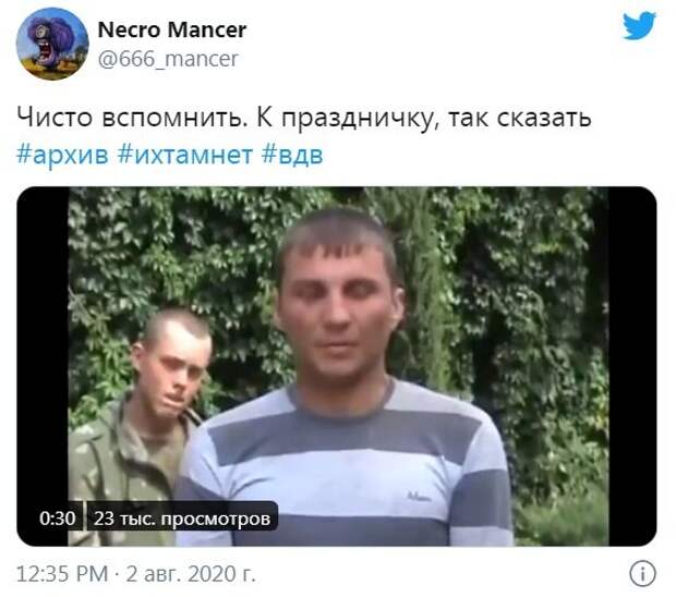 Российских десантников из Псковской дивизии и 31-й ДШД еще в 2014 году взяли в плен украинские военные в Донбассе. Чисто вспомнить. К праздничку, так сказать #архив #ихтамнет #вдв pic.twitter.com/8aOr8vmc1I — Necro Mancer (@666_mancer) August 2, 2020 Данное видео было снято во время выхода из Иловайска в 2014 году в селе Червоносельское. В день российского ВДВ, который отмечали в РФ 2 августа, блоггер решил напомнить, как российские десантники попали в плен ВСУ. "Чисто вспомнить. К праздничку, так сказать", - написал он в комментарии к видео. На опубликованных кадрах можно увидеть, как проводился допрос российских военных, которые признаются, что незаконно пересекли украинскую границу. Российские десантники подтверждают, что они являются не добровольцами, а кадровыми военными ВС РФ, которых перебросили через границу. Боевики предварительно получили приказ стереть номерные знаки со своей бронетехники. "31-я десантно-штурмовая дивизия", - сказал российский военный во время допроса. Также на видео русские десантники озвучили свои имена, даты рождения и другие личные данные. Напомним, командир бригады ВСУ высказался о Дне ВДВ в России: "Это кровь наших ...". Ранее Politeka сообщала, что настоящую бойню устроили в центре Москвы, досталось и силовикам: видео безумия. Также Politeka писала о том, как ВСУ разгромили боевиков на Донбассе, оккупанты потеряли десятки людей: все подробности.