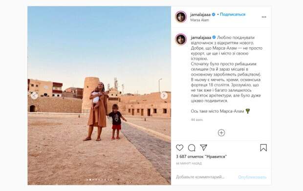 В нем есть мечеть, храмы, османская крепость 18 века. Понятно, что не так уж много осталось памятников архитектуры, но было очень интересно посмотреть", - поделилась певица в подписи к посту. На отдых Джамала отправилась со своими детьми: четырехмесячным Селим-Гираем и Эмир-Рахманом. Во время поездки певица была в необычном образе. Поклонники были удивлены такому необычному преображению любимицы. "Джамала, ты похожа на египтянку. Ребенок востока", "С этой прической вы очень похожи на Эвелину. Ну, или наоборот, она на вас", "Хорошего отдыха", "Почти как местный житель", - писали в комментариях под постом. Напомним, счастливая Джамала показала своих любимых мальчиков, семейные кадры: "Боже, какие вы милые". Как сообщала Politeka, старшая сестра-красавица Джамалы поразила внешностью, редкие фото: "Как две капли воды". Также Politeka писала, что эффектная Джамала в платье с пикантным вырезом показала, как спасается от жары: "Прекрасная". ⠀