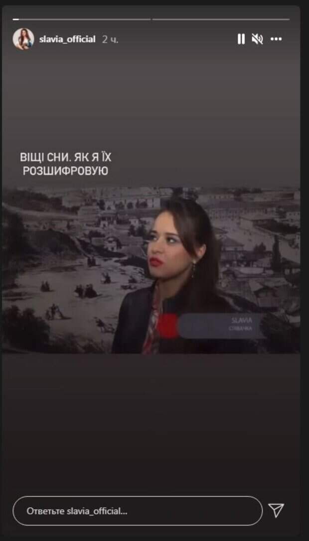 Недавно Slavia выпустила новый хит, и сейчас ее все чаще стали приглашать на телевидение. Так, в одном из интервью артистка рассказала о вещих снах и дала несколько советов по их расшифровке. "Всегда говорить первую мысль после сна. О том, что ты думаешь... И чувства, включать свое чувство, даже не думать, отключать мозг, отключать логику. Просто чувствовать, что может быть. И не бояться, если что-то не так, просто это такое предупреждение - нужно быть осторожными, нужно как-то обратить внимание на какие-то сферы своей жизни", - поделилась певица. В подписи артистка рассказала, что ей снилось этой ночью. "Мне (уже не первый раз) снилась дикая кошка, которая зацепила меня когтем, и пыталась поцарапать", - написала бывшая жена Дзидзьо. Отметим, артистка часто делится своими мыслями в Инстаграм, на котором у нее уже 23,3 тысячи подписчиков. Напомним, SLAVIA жестко ответила Цибульской, высказавшись о ее отношениях с Дзидзьо Также Politeka сообщала, что экс-жена Дзидзьо Slavia в пикантной позе показала, как расслабляется после развода А еще Politeka писала, что Slavia рассказала о личной жизни после развода с DZIDZIO
