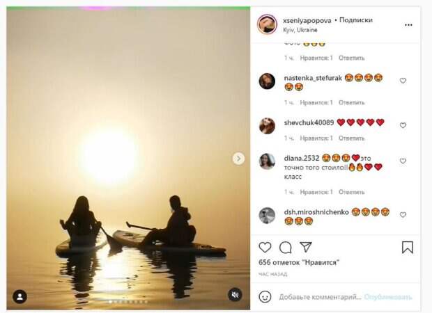 Не забывает Ксения и об Инстаграм, где делится с фанатами самым интересным. На новых фото Попова была на SUB-доске. Красотка вместе с подружками выплыла под утро на воду, чтобы посмотреть рассвет. "Проснуться в 3 ночи ,встретиться с девочками и увидеть своими глазами самый красивый рассвет", - написала Ксения под фото. Фанаты поставили более 600 лайков и написали комментарии: "Где такая красота, нереально", "Я хочу тоже самое", "Спасибо, мы уже собираемся", "Этот рассвет останется в памяти надолго". Напомним, звезда "Х-Фактора" и новой "ВИА Гры" в платье на тонких бретелях покорила видом в Милане А еще Politeka писала, что красотки из новой ВИА Гры в миниатюрных нарядах ослепили прохожих на улицах Милана Также Politeka сообщала, что Звезда "Х-Фактора" и новой "ВИА Гры" померялась декольте с эффектной подружкой
