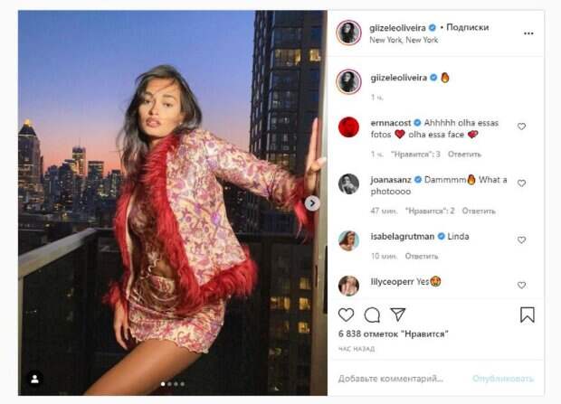 Известная модель Жизель Оливейра, звезда Victoria's Secret, показала себя в свежем образе На фото Жизель позировала в юбке, топе и накидке. Звезда стояла на балконе и хвасталась своей фигуркой, распахнув наряд. Оливейра соблазнительно выгиналась на кадрах, делая кадры максимально горячими и зажигательными.