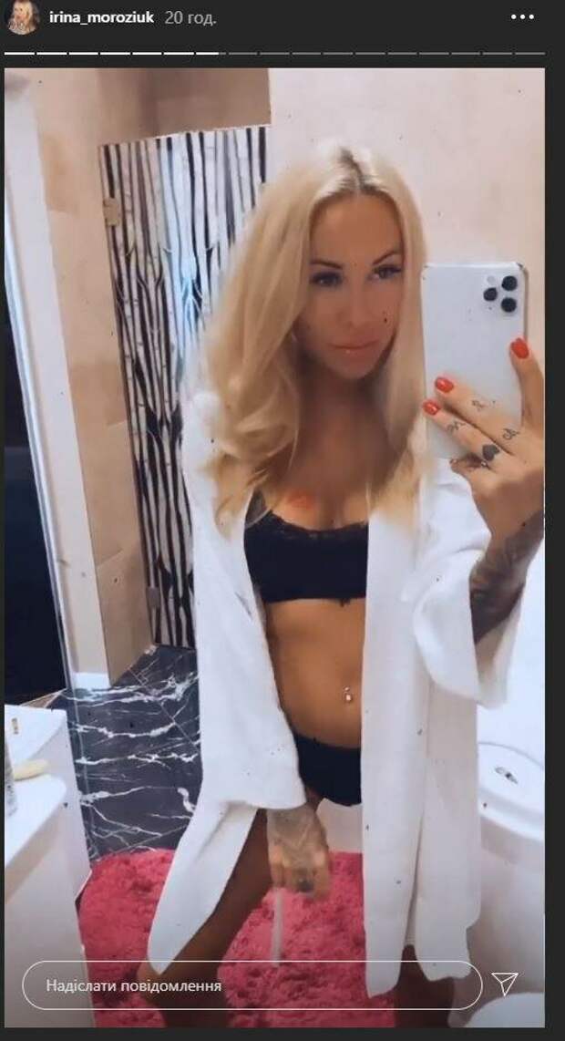 Бывшая жена экс-динамовца Николая Морозюка Ирина показала, как развлекается в ванной На фото Морозюк позировала в белом халате и черном белье. Красотка стояла перед зеркалом, а волосы оставила распущенными. Девушка показалась в ванной и не смущалась демонстрировать точеную фигуру. Об этом пишет Politeka.