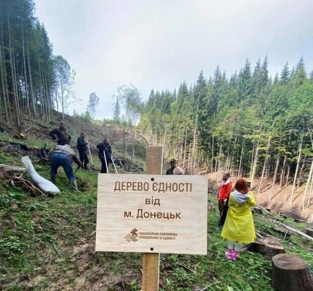 Жители Донбасса посадили новый лес на Верховине Как пишет From-UA, команда Национальной платформы примирения и единства, в рамках акции «Деревья единства», отправилась на Западную Украину, где из-за ежегодных паводков и оползней люди остаются без домов. Как сообщает пресс-служба НППЕ, на площади два гектара в Карпатах уроженцы Донбасса вместе с местными жителями высадили 2500 саженцев деревьев.