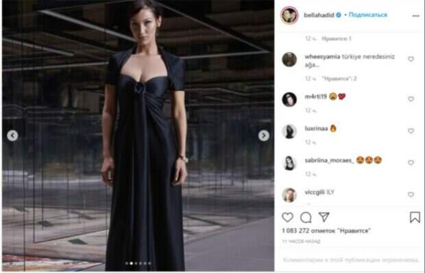 Сейчас модель придерживается золотой середины в норме своего веса, поэтому снова стала акцентировать внимание на фигуре, выставлять напоказ свое декольте и экспериментировать с луками. С ярким макияжем, выводящим глаза в центр внимания, в массивных украшениях с бусами и платье с декольте Белла стала похожа на настоящую диву. Как правило, Хадид не любит экстраординарные луки, но такие наряды в кокетливом стиле ей очень идут. Сама модель изящно повернулась к камере, показывая зону декольте под пикантным углом, из-за чего ее формы кажутся больше. Молодая супермодель, впрочем, никак не возражает против настырного внимания фанатов и продолжает будоражить видом в новых съемках. Не так давно Белла решила поделиться кадрами из фотосессии, в которой позировала в дизайнерских нарядах перед стеклянными стенами – инсталляциями. «Первый образ завораживает❤️; perfeita; вы выглядите такой счастливой, рад что ты вернулась к работе; божественная красоточка