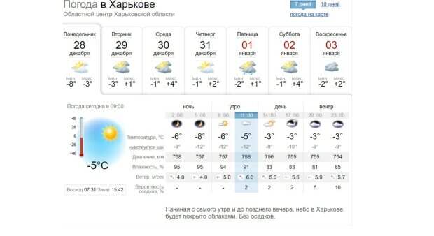На Харьковщине усилятся морозы Об этом сообщает "Синоптик". По данным синоптиков, начиная с самого утра и до позднего вечера, небо в Харькове будет покрыто облаками. Без осадков. Ночью температура воздуха составит -3 градуса мороза. Днем температура воздуха составит около 5 градусов мороза. Ранее мы писали, что Харьковская область находится на третьем месте по числу заражений за весь период По состоянию на 28 декабря с начала пандемии в Харьковской области зарегистрировано 1057 летальных исходов.