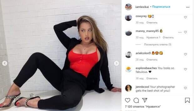 Так, белокурая девушка начала показывать, как она занимается, как подтягивает формы и следит за собой. При этом, чтобы подчеркнуть женственную фигуру, она решила периодически принимать участие в фотосессиях, непохожих на другие. В них Лекси не позирует в белье или купальниках, но подчеркивает достоинства другими нарядами. Девушка блистает в обольстительных платьях, модных спортивных костюмах и даже примеряет образы офисных бизнес-леди, как в этот раз. В черном брючном костюме и стильной маечке на тонких лямках, Лекси удалось покорить всех: «Превосходно