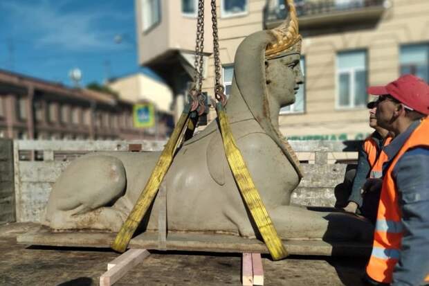 В Петербурге демонтировали двух сфинксов с Египетского моста и львов с Дворцовой пристани