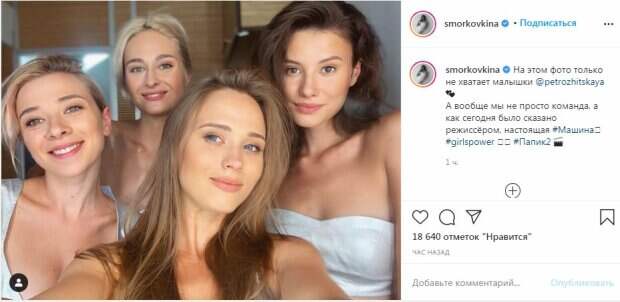 А вообще мы не просто команда, а как сегодня было сказано режиссёром, настоящая машина", - подписала она новое фото в своем микроблоге. Фото Анны Кошмал с коллегами по съемочной площадке, на котором они засветили свою главную "гордость", пришлось по душе поклонникам актрисы, из-за чего они оставили десятки восторженных комментариев. "Лучшие", "Ухх, какие красавицы", "Пушка очень", "Красавицы", "Просто конфетки", "Красотки шикарные женщины", "Аннетти, вы самая красивая из этого состава", "Какие вы красивые", "Какие вы все яркие. Успехов в работе, Анна", "Аня, ты лучше всех!", - написали они в комментариях под жарким фото. Ранее мы рассказывали, что известная украинская актриса Анна Кошмал, которая прославилась после роли в сериале «Сваты», показала себя во всей красе. Красотка была одета в черный брючный костюм. Правда, под пиджак Кошмал не стала надевать блузу или футболку, оставшись в спортивном лифчике. Девушка сидела в кресле, подняв свои волосы вверх. Внизу красовался распущенный цветок, который Анна неспроста добавила в кадр. Напомним, неугомонная Женя из "Сватов" не перестает удивлять А еще Politeka писала, что Женька из "Сватов" поразила внешним видом на съемках нового сезона "Папика" Также Politeka сообщала, что Женька променяла «Сватов» на новый сериал «Квартала 95», поразив видом в соблазнительном мини