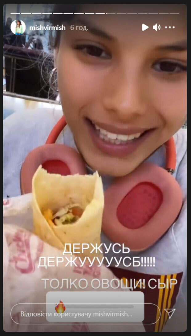 У себя в сторис Мишель показала, как в аэропорту вместо пончиков выбрала шаурму. Артистка отметила, что во время перелетов очень трудно держать себя в руках. «Я держусь. Да, я знаю, что здесь есть тесто. Но зато то, что внутри…там нет ни одного соуса. Без сахара, без ничего. Так что, держусь», - похвасталась Андраде. Позже она опубликовала отрывок тренировки. Судя по фото, тренер занимается с Андраде онлайн. «Настрой серьезный! Кайфонула сегодня. И чувствую себя прекрасно», - написала певица. На видео артистка очень старалась, повторяя упражнения, которые ей показывал тренер. Напомним, что Мишель Андраде в прозрачном белье заговорила о диете: "Шоколадки, пончики и...". А еще Politeka писала, что Андраде объявила о важных переменах в своей жизни: "Скоро". Также Politeka сообщала, что Андраде пожаловалась на ужасные условия на съемках «Орел и решка».