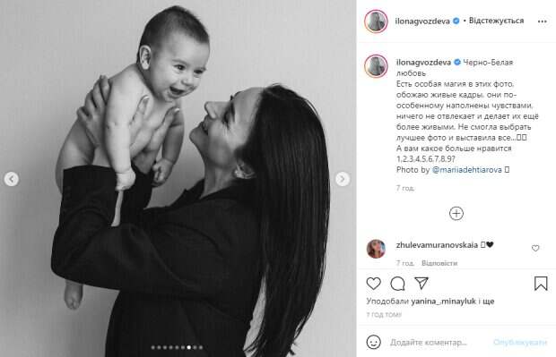 А теперь в своем микроблоге в Instagram звезда танцевального шоу показала очаровательные черно-белые кадры с новорожденным сыном. На новых снимках счастливая мамочка нежится с новорожденным малышом, прижимаясь к нему лицом. Перед камерой Илона появилась в черном наряде, ее волосы распущены и чуть растрепаны, а с лица не сходит блаженная улыбка. Видно, что артистка по-настоящему счастлива быть мамой. К слову, Гвоздева вместе с мужем растит еще и старшую дочь, и только недавно в их семье произошло пополнение – рождение сына. В подписи к фотографиям счастливая Илона написала: "Черно-Белая любовь. Есть особая магия в этих фото, обожаю живые кадры, они по-особенному наполнены чувствами, ничего не отвлекает и делает их ещё более живыми. Не смогла выбрать лучшее фото и выставила все... А вам какое больше нравится. 1,2,3,4,5,6,7,8,9? Photo by @mariiadehtiarova". Украинцы в восторге от этих милых кадров, некоторые растроганы прямо до слез, звезду засыпают комплиментами в комментариях к фото. Напомним, Располневшая победительница "Танців з зірками" без комплексов показала тело в "невидимом" боди: "В душе весна". Как сообщала Politeka, Измученную Гвоздеву из "Танців з зірками" с сыном на руках отругали за отсутствие лифчика: "Удивляюсь подобным "бабам".