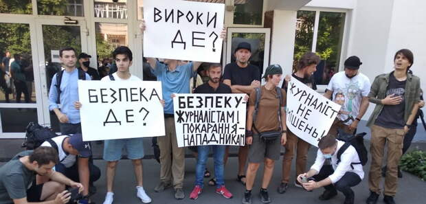В Киеве журналисты вышли на акцию протеста против безнаказанности тех, кто нападает на сотрудников СМИ во время уличных акций праворадикалов. Об этом из Киева передает корреспондент «ПолитНавигатора».