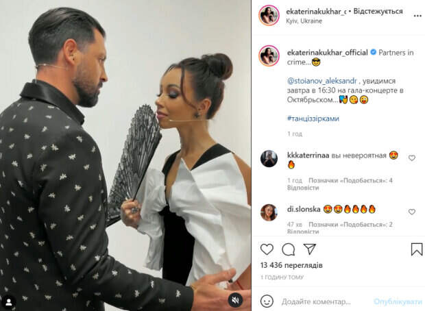 Чмерковский делал вид, что пытается прикоснуться к звезде. Видео получилось настолько страстным, что мужу Кухар Александру Стоянову стоило бы начать ревновать. «Соучастники преступления. @stoianov_aleksandr , увидимся завтра в 16:30 на гала-концерте в Октябрьском», - игриво подписала Кухар видео, обращаясь к мужу. В комментариях судьям шоу оставили массу приятных отзывов. «Красивые», «Вы невероятная», «Какая пара», «Огонь», «Такие красивые и талантливые танцоры», «Екатерина, ваши серьги, они невероятные», «Лучшие», «Макс так хорошо смотрится рядом с вами», - пишут пользователи сети. Напомним, что Кухар похвасталась стройной фигуркой на рабочем месте: «Сердце радуется…». Как сообщала Politeka, Кухар поведала, как справляется с плотным графиком: «Несколько правил для…». Также Politeka писала, что Чмерковский заткнул за пояс Яму и Кухар: "Надоели..."