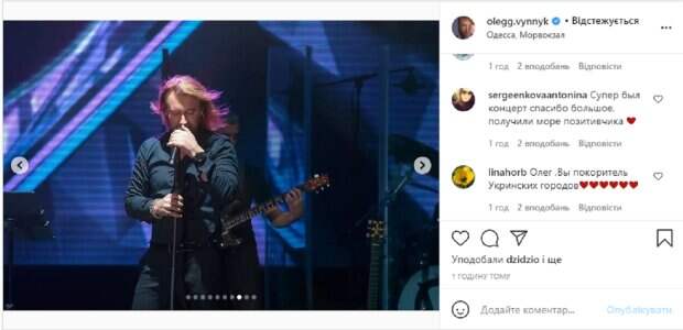На фотографиях видно, что за время концерта Олег сменил несколько нарядов. Больше всего привлекает внимание его образ со стильной черной рубакой, которая едва заметно повторяет все очертания величественного торса, и с темными классическими брюками. В подписи к фотографиям Винник написал: "Мы вместе с вами создали настоящий праздник, Одесса". Пользователи тут же принялись комментировать снимки певца, благодаря его за концерт и приглашая в свои города: "Непревзойденные фото! Непревзойденные вы! Зажгли Одессу", "Теперь Одесса – самый счастливый город. И Харьков безмерно Вас ждет", "Мы сделали непросто праздник, а мега праздник!", "Лучшие фото!", "Такие атмосферные фото", "Олег, вы лучший", "Спасибо!", "Спасибо вам за все, вы лучший!", "Олег, Вы покоритель украинских городов". Напомним, "Тайную супругу" Олега Винника неожиданно сравнили с Поляковой: "Мне одной кажется, что они...". Как сообщала Politeka, Олег Винник на берегу моря исполнил мечту своих верных "волчиц": "Как же было горячо". Также Politeka писала, что Юная фаворитка Олега Винника показала эффектный образ с ярким мейкапом: "Выше всяких похвал".