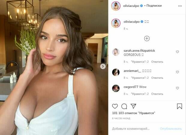 Калпо сделала селфи, немного приподняв камеру. Оливия засветила пышную грудь в белом топе со смелым декольте. Ткань натянулась на больших бретельках и грудь сжалась, будто одежда была уж очень узкой. Кроме того, молния посередине придала пикантности образу и даже немного расстегнулась. Знаменитость распустила недлинные волнистые волосы. Легкий макияж лишь подчеркнул невероятную красоту "Мисс Вселенной". Звезда выглядела не только очень сексуально, но и мило, что отметили ее поклонники. За восемь часов фото собрали более 100 тысяч лайков и много комментариев. Пользователи сети написали Калпо массу приятных сообщений, было видно, что мужчины покорены. Напомним, Оливия Калпо появилась в маленьком купальнике, который едва что-то прикрывал. Лифчик представлял собой два крохотных треугольника ткани на тончайших бретельках. Такой купальник просто невероятно подчеркнул грудь красотки. Также модель надела длинную юбку, немного спустив ее с бедер и посветив лямками плавок. Ранее мы писали, что Оливия Калпо обнародовала жаркий кадр в сториз. Модель позировала в лифчике, который отлично подчеркнул ее грудь. Небольшие формы едва ли вмещались в тесном белье. Сверху Калпо надела жакет с укороченными рукавами. Поклонники не могли устоять. Напомним, самая красивая женщина планеты Оливия Калпо взбудоражила «проукраинским» номером: «горячая смуглянка» Как сообщала Politeka, Мисс Вселенная Оливия Калпо сводит с ума горячими фото: «Вы заставляете меня…» Также Politeka рассказывала, что у горячей «Мисс Вселенная» Оливии Калпо развязался купальник на пляже: «Папа будет в бешенстве!»