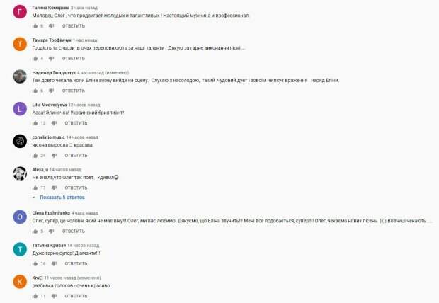 И поэтому решил записать с ней дуэт на новую песню "Діаманти". Как передает Politeka.net, украинцы бурно отреагировали на такой творческий союз и композицию о сильных чувствах. «Олег и Элина, ваш дуэт это бомба. Спели так красиво: мелодично, душевно, просто дух захватывает. Вот это и есть настоящие Голоса Украины. Молодцы, браво», «Как я рада за Элину. Выросла на наших глазах. Наблюдаю за ней с начала проекта Голос дети. прям горжусь если честно», «Как она выросла!», «Ох, уж этот тот взгляд Винника) Олежек, что ж ты делаешь) Ухххх) Элина то как подросла, похорошела, изменилась, стала увереннее, а голос еще сильнее», «Они нереальные», - пишут в комментариях. Отметим, Элина Иващенко біла участницей шоу "Голос Діти" в 2016 году. Также она представляла Украину на "Славянском базаре", а в 2020 году участвовала в Национальном отборе на "Евровидение". Напомним, Олег Винник едва сдержал слезы из-за потери участницы "Голосу країни", закулисное видео: "Больно..." Как сообщала Politeka, Дорофеева на "Голосі країни" подслушала тайные переговоры Винника и Монатика: "Пацаны, у вас все хорошо?" Также Politeka писала, что Винник вызвал восторг появлением со своей 19-летней «избранницей».