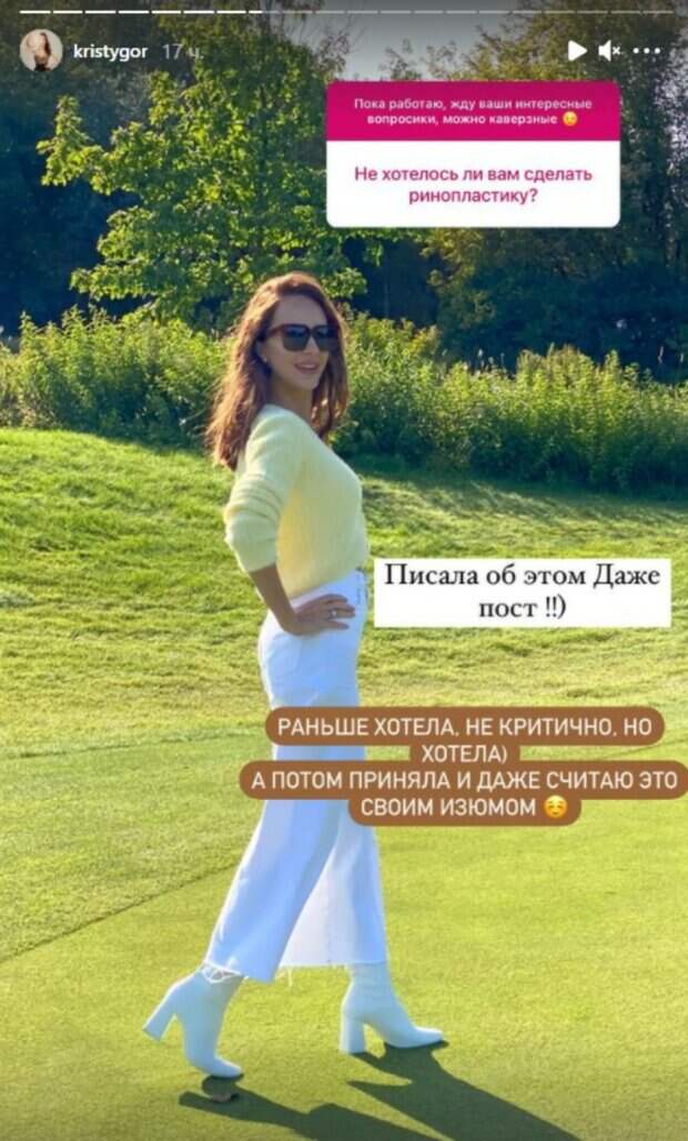 Не осталась незатронутой и тема ринопластики, которую Кристина сама часто поднимала у себя под фото, комплексовав из-за формы носа. Теперь, по словам Кристины, она себя приняла и считает «это своим изюмом». Также Кристина подчеркнула: у нее увеличилось количество тех людей, с которыми она не общается и даже не здоровается. «И кстати, они следят за мной и даже наблюдают с других страниц, на постоянной основе. Яро обсуждают и создают сплетни. Привет вам, я все знаю», - подметила Горняк. После она призналась, что уже в конце апреля сможет оправиться в долгожданный отпуск. По этому поводу Кристина опубликовала ролик, в котором в коротенько приподнятом платье веселилась на прошлом отдыхе, сверкая точеной фигурой: "Едем в теплые края!" - написала она. Как известно, у Кристины пока нет детей, эта тема довольно популярна в сети. И сам вопрос пополнения в их семье постоянно вызывает интерес у общественности. Кристина также ответила на него в своем Инстаграм. Так, у девушки поинтересовались, скольких детей она хотела бы завести. На это Горняк откровенно призналась, что не задавалась таким вопросом. В то же время, она подчеркнула, что они с Остапчуком мечтают об общих детях. «Честно скажу, что я об этом не думала! Мы хотим детей, хотим и будут у нас здоровые детки и этом самое важное! А остальное время покажет!», - написала она. Напомним, жена Остапчука ошарашила видом с раздутыми губами и скулами: "Новая я? Муж, как тебе?". Как сообщала Politeka, горе пришло в семью Владимира Остапчука, первые подробности: "Успел попрощаться...". Также Politeka писала, что измученный болями Владимир Остапчук загремел к врачам посреди ночи, ситуация очень плохая: "Ребят...".