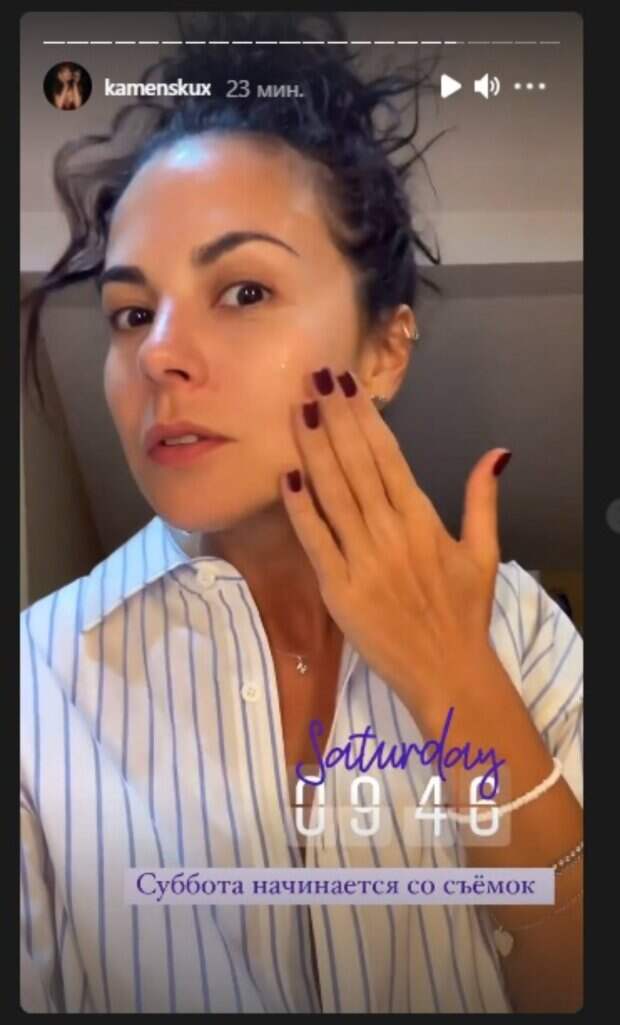 Певица Настя Каменских решила поднять себе настроение, а заодно и другим тоже 34-летняя звезда показала, как началось ее субботнее утро, выставив соответствующие кадры в Инстаграм, передает Politeka.net. В "сториз" Настя рассказала, что приехала на съемки и находится в бодром расположении духа в предвкушении хорошего дня.
