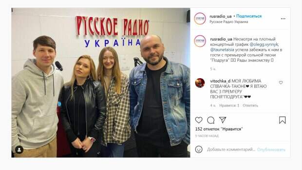 А Таисия продолжает свою работу, выпуская новые хиты. Так, из нового поста на Инстаграм-странице "Русское радио" стало известно, что артистка представила новую песню "Подруга". "Несмотря на плотный концертный график @olegg.vynnyk, @taunetaisia успела забежать к нам в гости с премьерой сольной песни "Подруга"