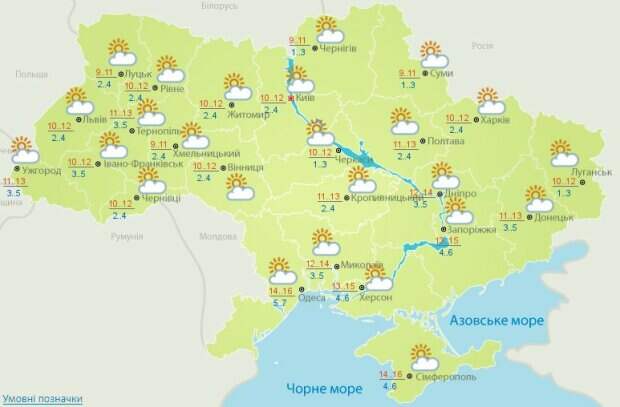 На севере украинцев также ждет облачность и дневные 9-12 по Цельсию. Ночью местами будут заморозки до +1 градуса. Синоптики утверждают, что в темное время суток будет от 1 до 4 тепла. Заморозки также будут и в части центральных областей. Здесь днем будут тучи и 10-15 на термометре. Ночью же воздух резко остынет до 1-6 тепла. Немного теплее сегодня будет в прибрежных областях. На юге воздух днем прогреется до 12-16 тепла. Ночью, правда, их сменят 3-6 по Цельсию. Прохладнее сегодня будет на востоке Украины: днем 10-13 градусов по Цельсию, а ночью резко похолодает до 1-5 выше нуля. В Киеве и области, по утверждению синоптиков, будет облачно и около 9-13 градусов днем. Ночью их сменят морозные 1-5 по Цельсию. Синоптики из Укргидрометцентра также рассказали, что в Луганской, Донецкой и большей части Одесской областей сохранится повышенный уровень пожарной опасности. Так будет вплоть до 21 октября. До этого мы приводили прогноз синоптика Натальи Диденко о том, что местами в Украине сегодня возможны заморозки. Причиной этого она называет то, что Украина попадет под влияние мощного западного циклона. Напомним, что разрушительная стихия мчится на Украину, Киев в эпицентре: объявлено штормовое предупреждение. Как Politeka писала, что стихия обрушилась на Украину, города превратились в Венецию: кадры бедствия. Также Politeka сообщала, что мощный атмосферный фронт разделит Украину, свежий прогноз погоды: "грозовые дожди и...".